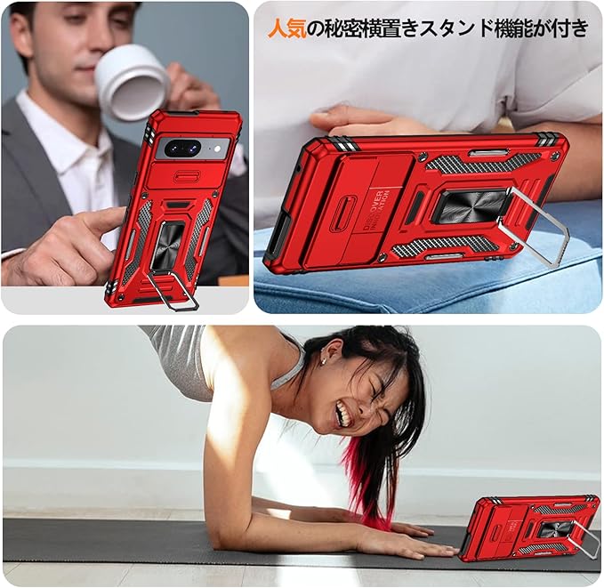 PNEWQNE Google Pixel 7 Pro 兼用ケース リング付き 衝撃吸収 耐衝撃 スタンド機能 米軍MIL規格 グーグル ピクセル 7 pro 兼用ケース 全面保護 360 回転 滑り落ちにくい 人気 おしゃれ 携帯カバー 赤 WY88-178