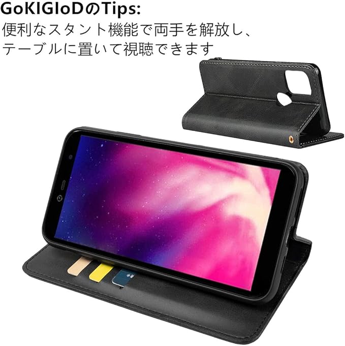 GOKIGIOD 適用 Google Pixel 5 ケース 手帳型 PUレザー ストラップ 同梱 カード収納 スタンド機能 耐衝撃 グーグル ピクセル5 スマホケース 手帳 Pixel5 case カバー 財布型 内蔵マグネット 弱磁 ストラップホール 携帯カバー レトロ ブラック