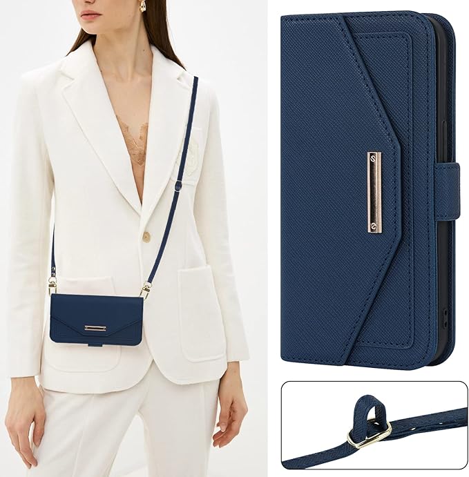 Eastwave for Google Pixel 7 Pro ケース for Pixel7 Pro 縄掛けカバー 手帳型 手帳 for pixel 7pro case チェック柄 鏡 ミラー付き 長ストラップ付き 肩掛け 革レザー 柔らかいTPU 多機能 財布型 カード収納 小銭入 れ スタンド機能 全面保護 5色ブルー