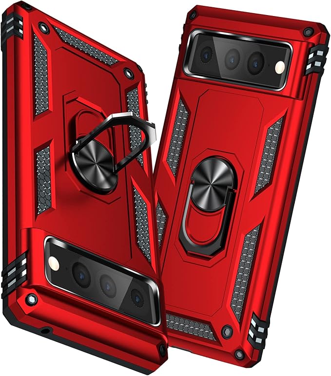 Google Pixel 7 Pro 用ケース リング 耐衝撃 衝撃吸収 傷防止 全面保護 カメラ保護 スタンド付き TPU+PCバンパー 指紋防止対策 グーグルピクセル7 pro 用ケース 6.7インチ 二重構造 360度回転 防塵 車載ホルダー対応 黄変防止 米軍MIL規格 軽量 薄型 耐傷性 滑り止め 人気 携帯カバー 赤 MZ61-119