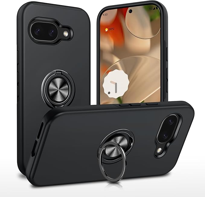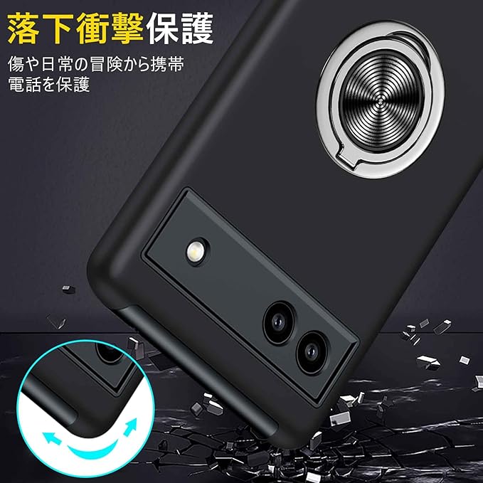Google Pixel 9A 用ケース リング 耐衝撃 衝撃吸収 全面保護カバー TPU+PCバンパー 二重構造 米軍MIL規格 車載ホルダー対応 擦り傷防止 滑り止め 薄型 軽量 グーグル ピクセル 9a 用カバー 耐久 指紋防止 おしゃれ 人気 携帯カバー 黒 MZ86-06
