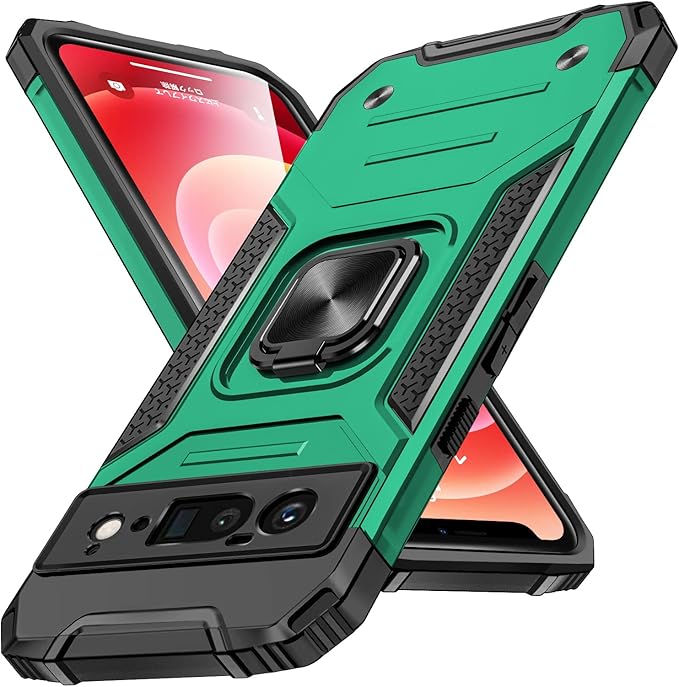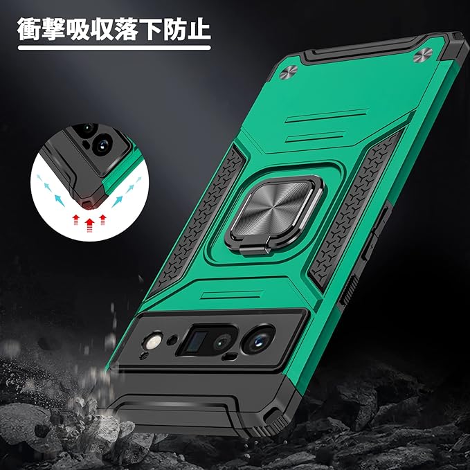 対応 Google Pixel 6 pro 用の ケース リング 耐衝撃 衝撃吸収 携帯カバー 米軍MIL規格取得 TPU+PC 指紋防止 車載ホルダー対応 スタンド機能 防塵 薄型 軽量 落下防止 擦り傷防止 レンズ保護 绿86-APix6p-05