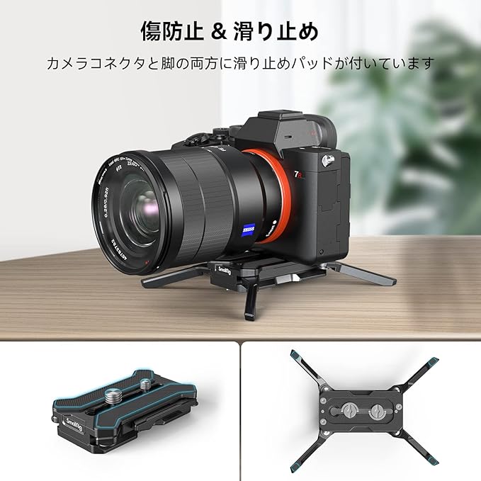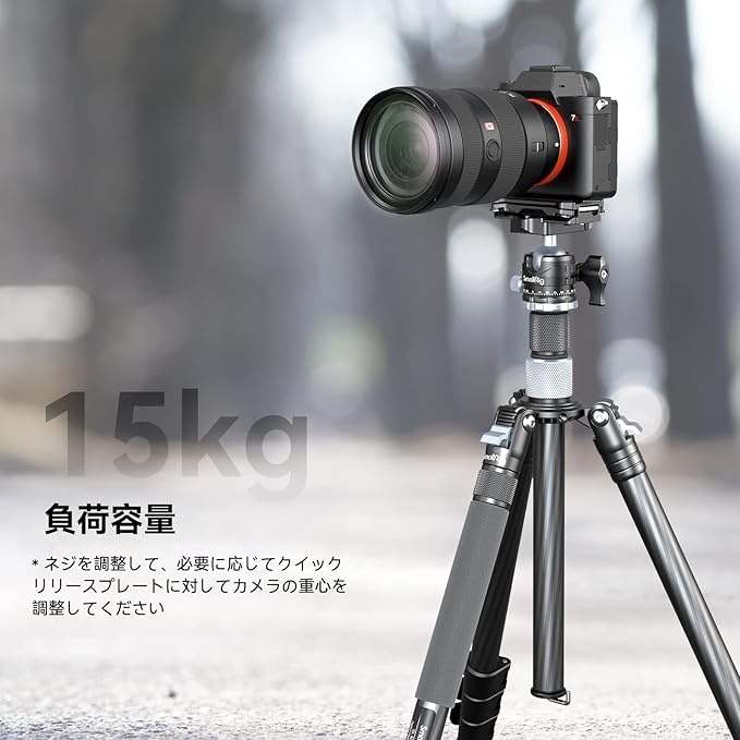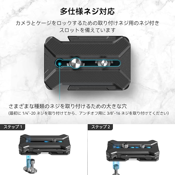 【注意: 1. 5.9 インチ/15cm 以下のレンズをお勧めします。 2. 必要に応じて、ネジを調整して、カメラの重心をクイック リリース プレートに対して調整してください。