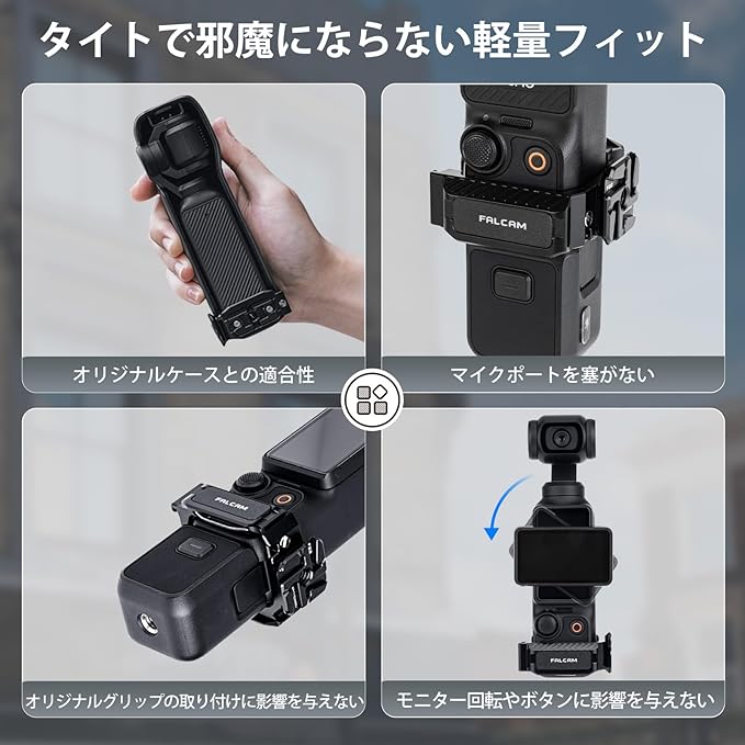 【タイトで邪魔にならない軽量フィット】このケージを取り付けた後、オリジナルの保護ケースと適合性があります。 本製品はデザイン性に優れ、マイクポートを塞がず、純正グリップの装着を妨げず、さらに重要なモニターやボタンの回転を妨げません。
