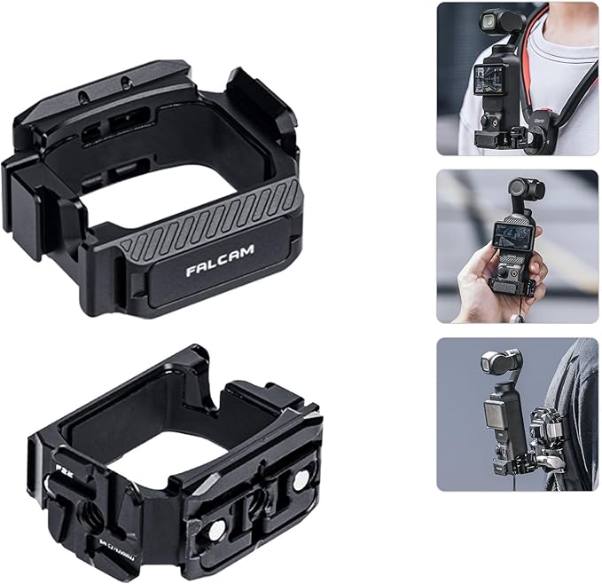 Ulanzi F22 Pocket3用ケージ F22クイックリリース カメラ拡張アダプター コールドシュー付き アルカスイス対応に対応 Action用アクセサリーに対応 1/4"ネジ穴 ストラップホール付き 多機能ケージ 保護シリコーンマット アルミ製