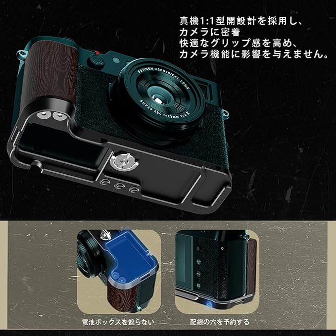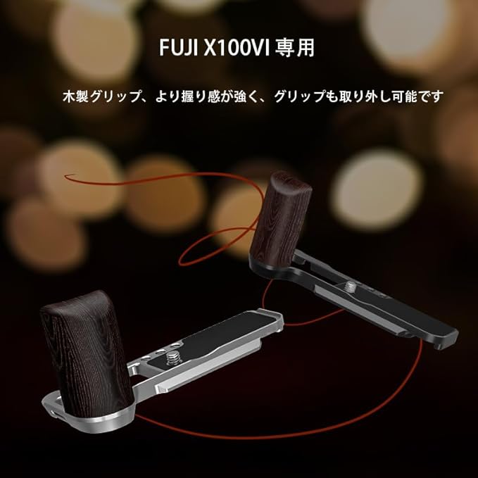 SIUTATDSH カメラグリップ 適用 Fujifilm Fuji 富士 X100VI X100 M6 専用 L型クイックリリースプレート、グリップ 木製ハンドル、電池交換でき、三脚設置でき、Arca Swiss規格 (BK)