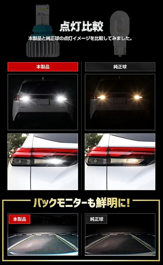 T16 90W ノート/オーラ E13 e-POWER バックランプ LED 無極性 BULB 2個1セット 6500K ヒートシング放熱 車検対応 カスタム パーツ アクセサリー ドレスアップ E13 NOTE T16 90W