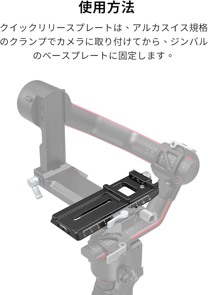 【デザイン目的】クイックリリースプレートは、 RS 3 / RS 3 Pro / RS 2 / RSC 2 / Ronin-S用ジンバルに直接にアルカスイスのL型プレートやアルカスイスのケージを取り付けるために設計されています。