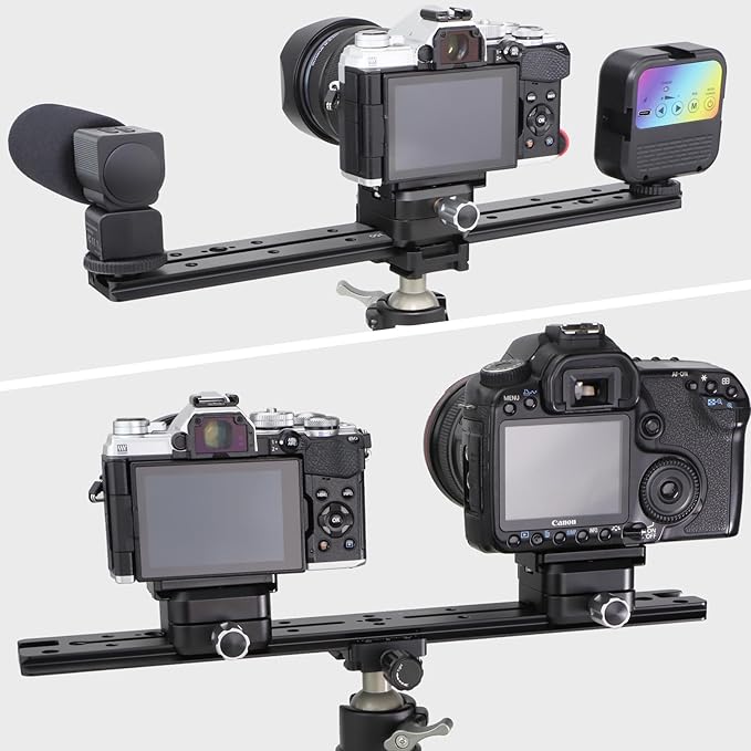 【複数の取り付け穴】Dリングネジ付きユニバーサルクイックリリースプレートは、より多くの1/4"3/8 "ネジ穴と3つのコールドシューで、他の機器を取り付けることができます。