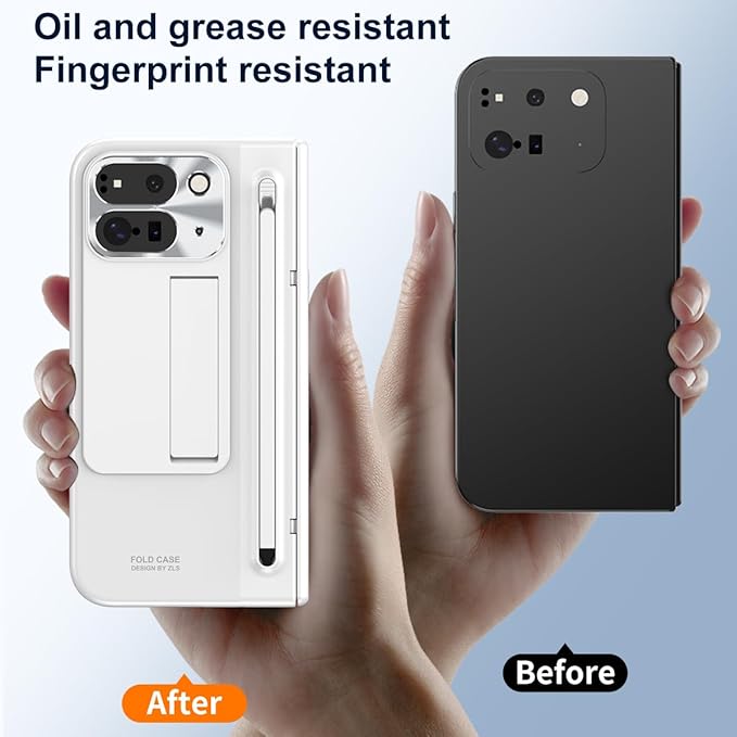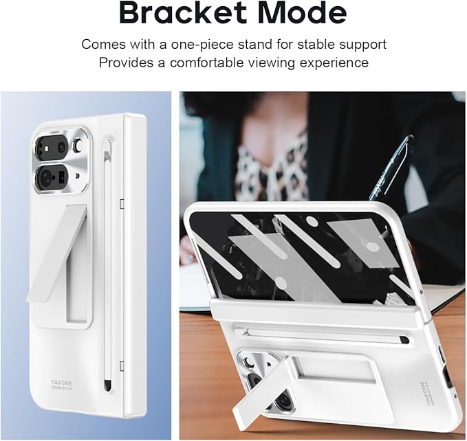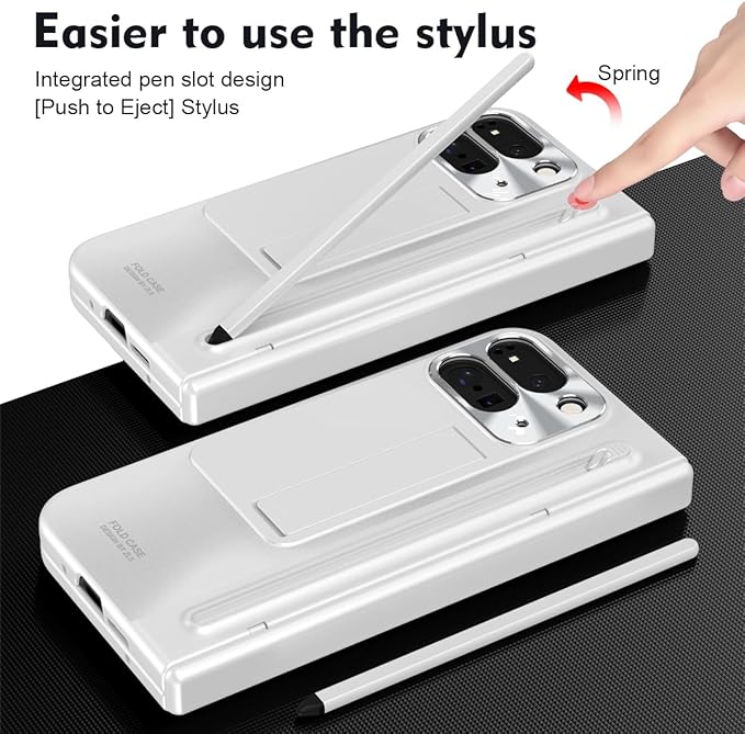 GG Pxl 10 Pro Fold / 9 Pro Fold専用 多機能統合型 ケース 全面保護+強化ガラスフィルム+きんぞくラッカ+ペン 隠しスタンド機能 ヒンジ保護 ワイヤレス充電サポート 手帳型 携帯カバー 薄型 軽量 キラキラ 衝撃吸収 指紋防止 面白い 個性 二層構造 Beautycatcher - 白