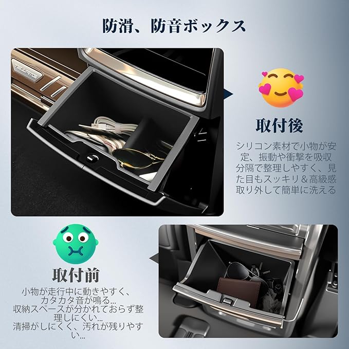 【防水性、滑り止め、無音】アルファード40系専用収納ボックスは、水洗いできる素材を採用しており、汚れても簡単にお手入れできていつでも清潔。底面は滑り止め加工を施したゴム素材で、小物が走行中に滑ったりカタついたりする心配もなく、静かで快適な車内空間を保ちます。