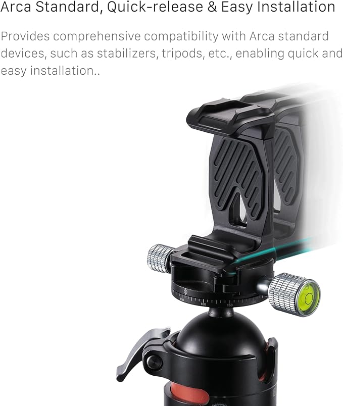 【ARCA規格】このブラケットはユニバーサルクランプを介してスマートフォンに取り付けられ、底部にはDJI RS3 MiniのようなARCAベースのジンバルにシステムを便利に取り付けることができるARCAクイックリリースプレートを利用しています。