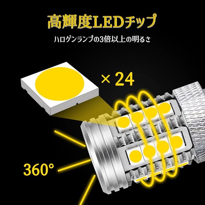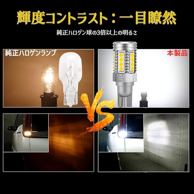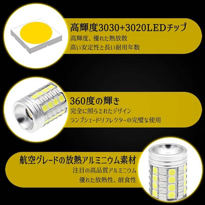 後退灯専用高品質3030SMD LEDチップ6個搭載、死角のない360度全方位照射仕様、ハロゲンより明るさが3倍で!