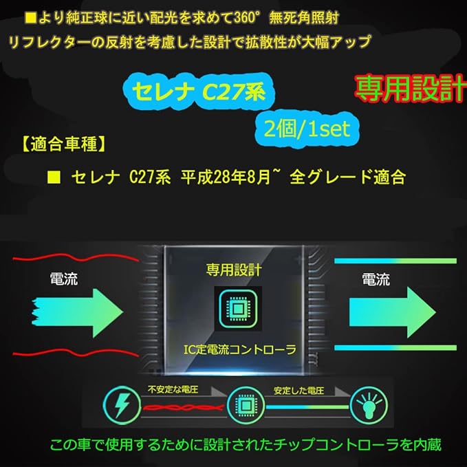 【専用設計】セレナ C27系専用設計。専用設計ならではのフィット感,CANBUSキャンセラー内蔵,別途抵抗不要!ポン付けで良いので面倒な配線処理も必要ありません。