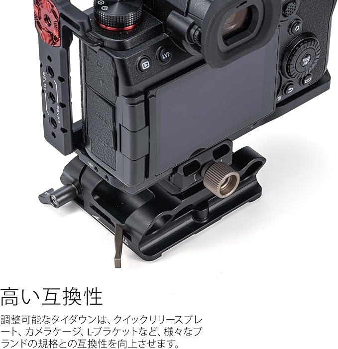 【調節可能なロック】このベースプレートは、クイックリリースプレート、カメラケージ、L-ブラケットなどの様々なブランドの規格との互換性を高めることができる調節可能なロックレバーを備えています。