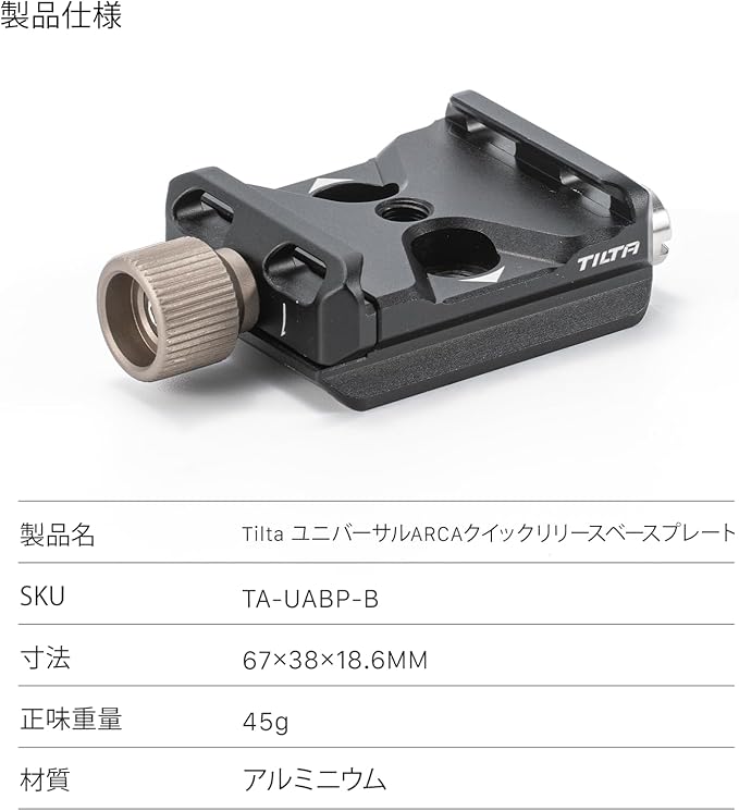 【軽量ベースプレート】TiltaのユニバーサルARCAクイックリリースベースプレートは、様々なサポートシステムにカメラを安全に取り付けるための軽量で便利なオプションです。
