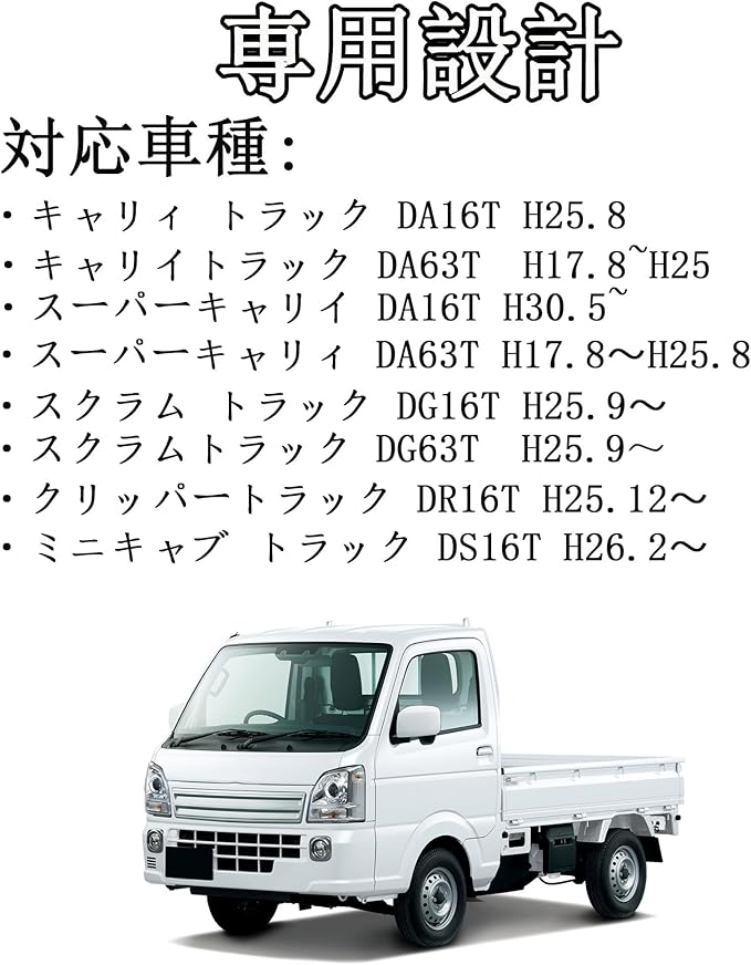 適合車種:・キャリィ トラック DA16T H25.8〜 ・キャリイトラック DA63T H17.8~H25・スーパーキャリィ DA63T H17.8〜H25.8 ・スーパーキャリイ DA16T H30.5~ ・ スクラム トラック DG16T H25.9〜 ・ スクラムトラック DG63T H25.9~ ・ クリッパートラック DR16T H25.12〜 ・ミニキャブ トラック DS16T H26.2〜