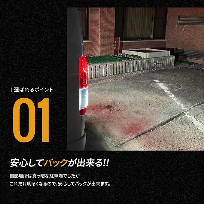 ✅【明るさが抜群で視認性向上】 夜間や悪天候時でも驚くほど明るい光を実現。視界が格段にクリアになり、後方の状況をしっかり確認できます。 暗い環境でのバック操作や駐車時も安心してお使いいただけます。視認性が向上し、バックカメラも見やすくなります。