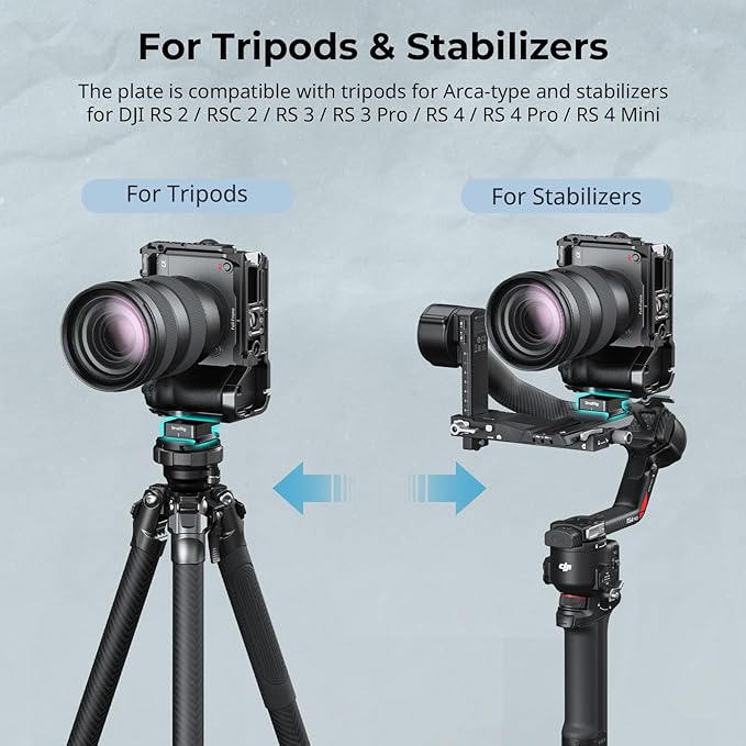 3. Arcaタイプ用の三脚とDJI RSシリーズのスタビライザーと互換性があり、三脚とジンバルのセットアップ間の高速移行を可能にし、ワークフロー効率を向上させます。