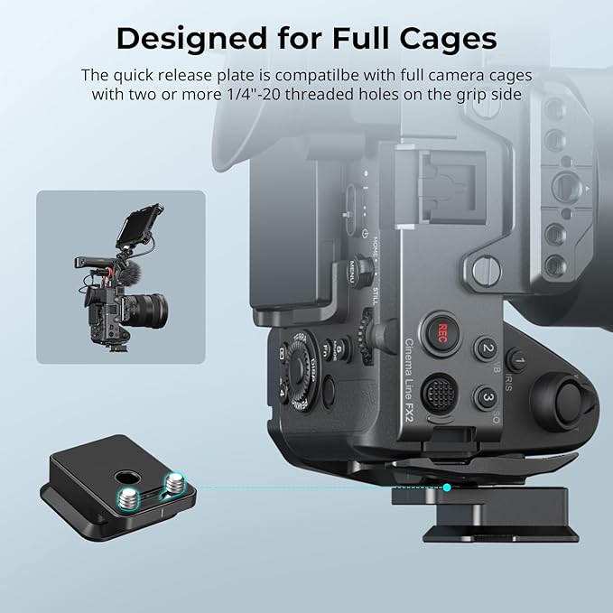 【フルケージ用に設計】クイックリリースプレートは、グリップ側に2つ以上の1/4インチ-20ネジ穴があるフルカメラケージに対応しています。 Sony、Canon、Nikon、5587/4183B/4978/5656/4481などのSmallRigケージで広く使用できます。