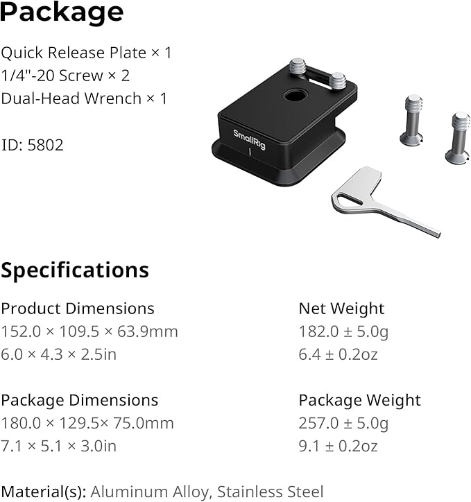 【Arca用クイックリリース】クイックリリースプレートはArca swiss用で、ほとんどのArcaタイプのケージと互換性があります。 プレートの重さはわずか182g / 6.4オンスで、持ち運びや使用が簡単です。 取り付け・取り外しが簡単なデュアルヘッドレンチが付属しています。