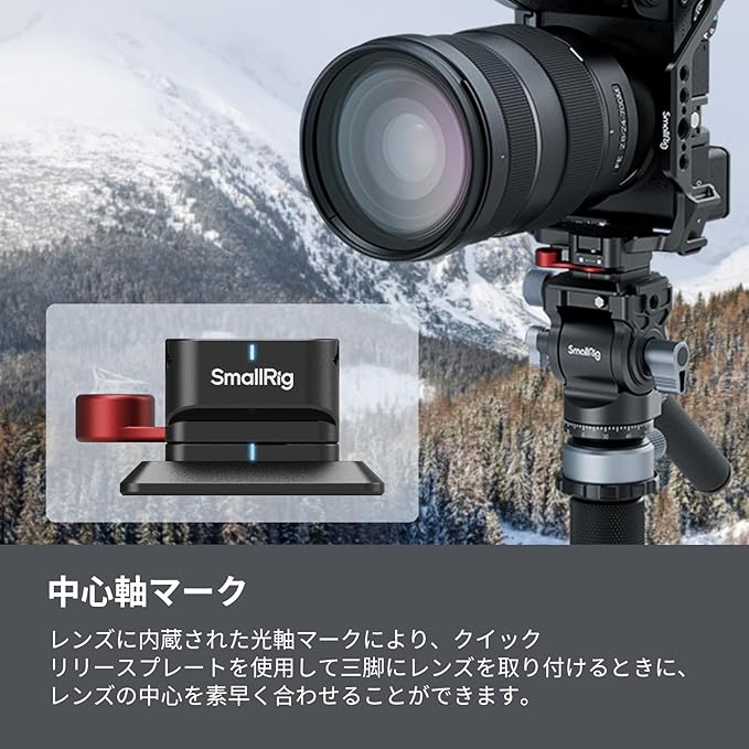 【取り付け簡単】 内蔵のレンズ光軸マークにより、クイックリリースプレートを使用して三脚に取り付けるときにレンズの中心をすばやく合わせることができ、撮影効率が向上します。