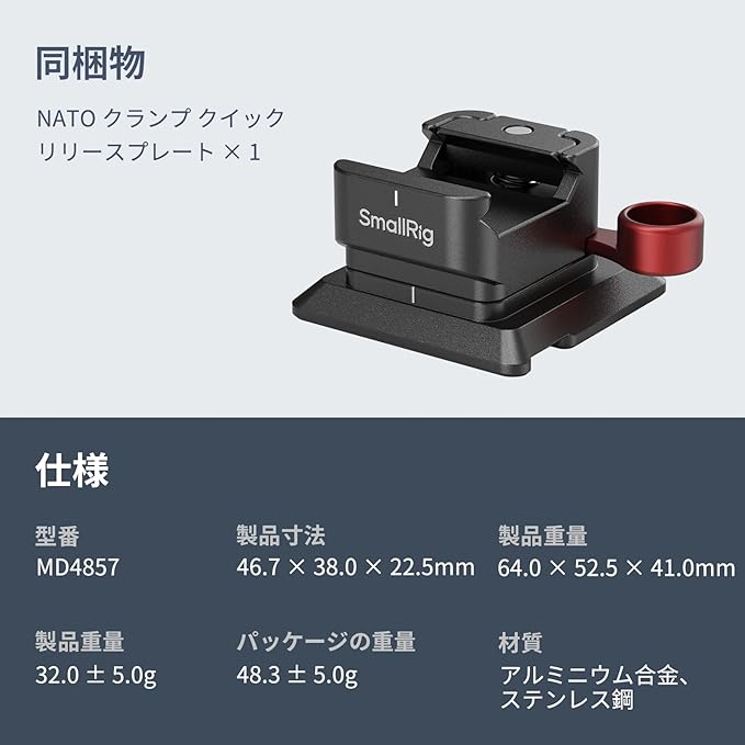 SmallRig NATOクランプ クイックリリースプレート Arca-Swiss用 NATOクランプ内蔵 軽量 持ち運びに便利 Arcaタイプ三脚と互換性あり MD4857