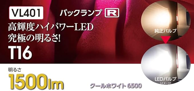 Valenti ヴァレンティ VL401-T16-65 ジュエルLEDバルブ VLシリーズ クールホワイト6500 T16タイプ 1500lm 1個入り バックランプ専用