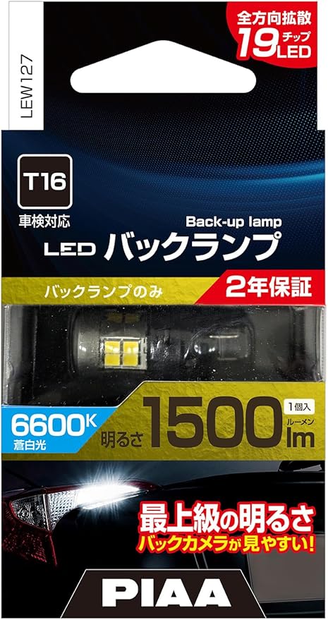 PIAA バックランプ用バルブ LED 6600K 超高照度化を実現 1500lm 12V 15W 車検対応 T16 ★定電流&インタラクティブ制御回路内蔵/全方向拡散5チップ 1個入 LEW127