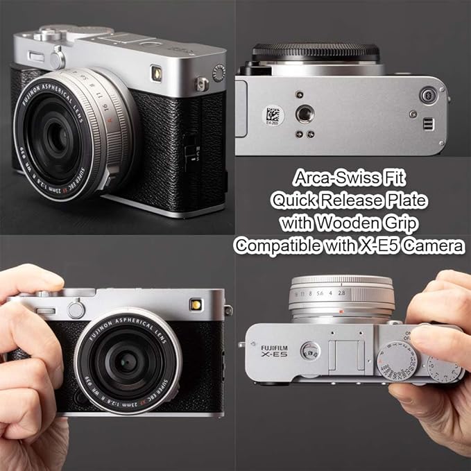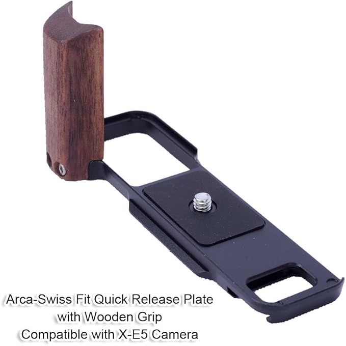 Fuji Fujifilm富士の互換性ありX-E5 カメラ対応,L-シェイプ Arca-Swiss Fitアルカスイス フィット クイックリリースプレート, 1/4"-20 ネジ穴、軽量 人間工学に基づいた木製ハンドグリップ