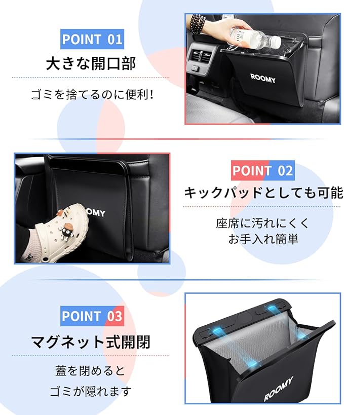 ルーミー 車 ゴミ箱 スリム型 車用 ごみ箱 ROOMY カスタマG G-T M900a系 マグネット式 車内 ゴミ入れ 防水 収納ボックス PUレザー 小物入れ 後部座席 カー アクセサリー 1個入(ルーミー,ブラック)