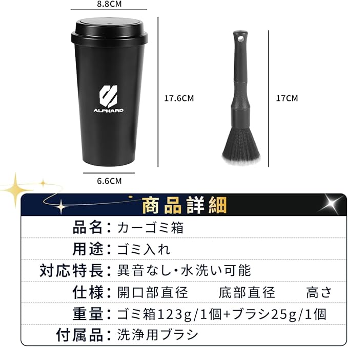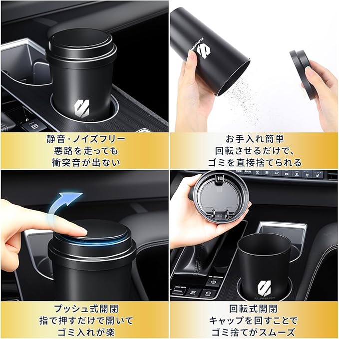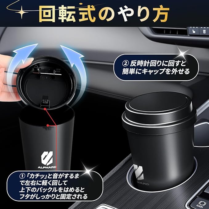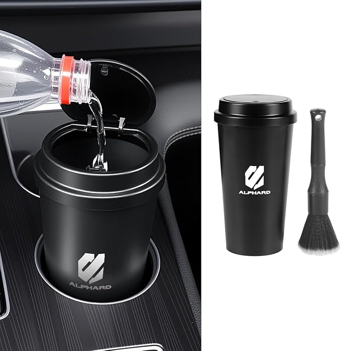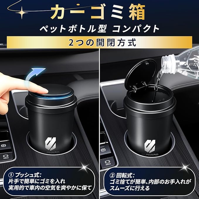 アルファード 適用 ゴミ箱 コンパクト ペットボトル 倒れない 軽量 静音 2種類の開閉方式 使いやすい カー アクセサリー 収納 パーツ ミニサイズ インテリア(ナイロンブラシを贈る)