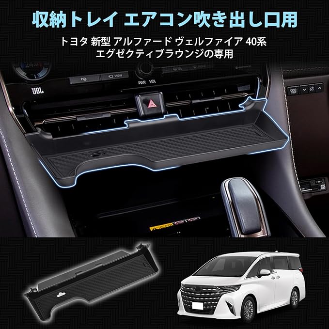 Auto Spec トヨタ 新型 アルファード ヴェルファイア 40系に適合 収納トレイ エアコン吹き出し口 センターコンソルトレイ 2023年6月-現行 エグゼクティブラウンジ 車内収納ボックス コンソール 小物入れ 車種専用設計 内装 パーツ 滑り止め ラバーマット付き 装着簡単 メーカー直営 (トヨタ 新型 アルファード 40系)