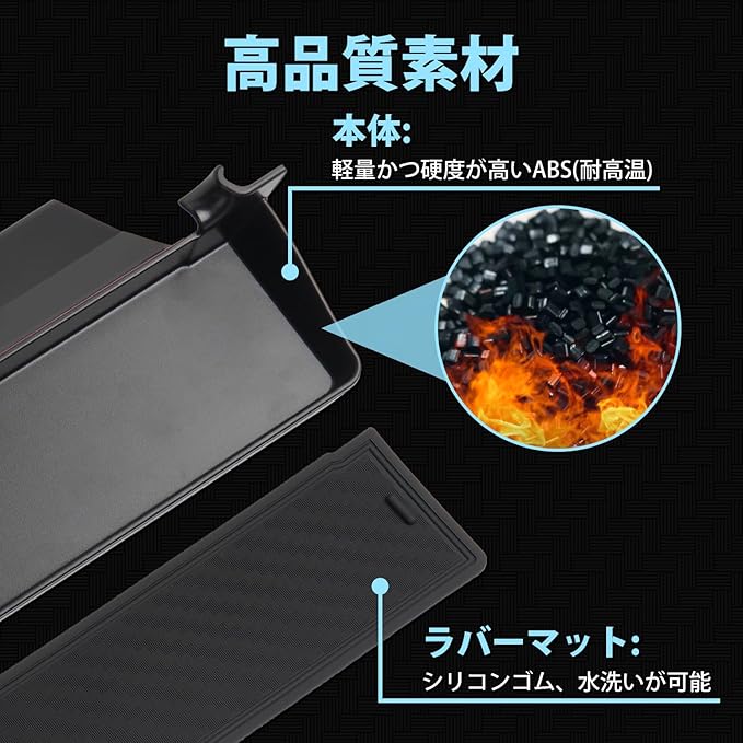 3.【素材&騒音防止】:本体:軽量かつ硬度が高いABS樹脂製 (耐高温) 、ラバーマット:耐熱性、耐磨耗性に優れたシリコンゴムを採用し、車の振動を吸収し、運転中でトレイの小物の滑りによる騒音を減らす。また、水洗いが可能で、マットをいつでも清潔に保てます。