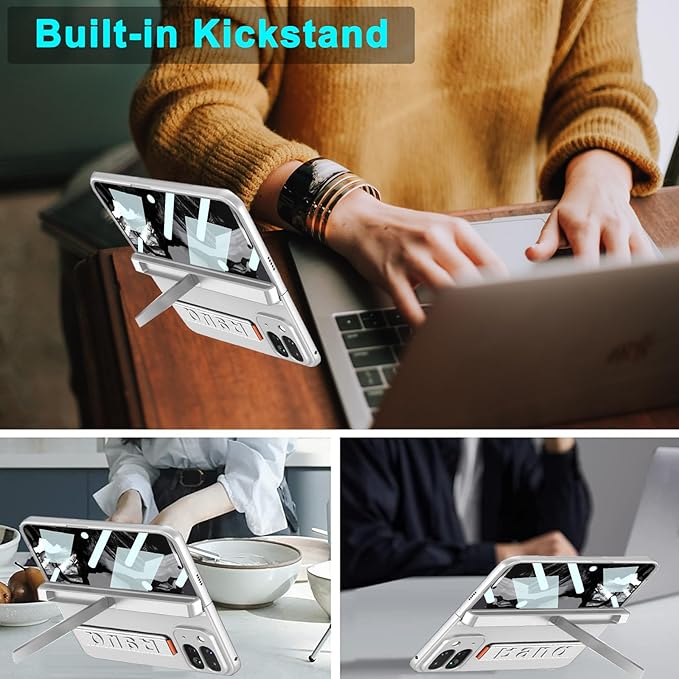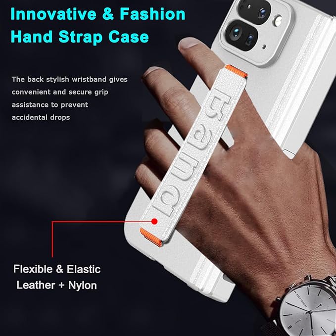 NINKI適応 Google Pixel 9 Pro Fold/Pixel Fold2 ケース 格納式リストバンド 磁気吸着ヒンジ スタンド機能 折り畳み式 PC製品 弾力ナイロンレザー スクリーンフィルム一体型 ヒンジ保護 ワイヤレス充電対応 グーグル ピクセル 9プロ フォールド 5G スマホ 保護カバー アクセサリー (シルバー)