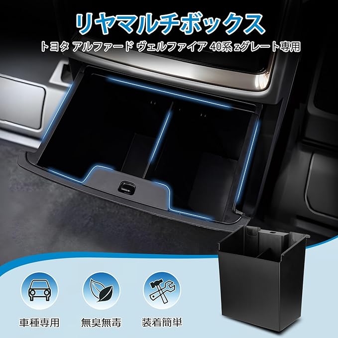 Auto Spec トヨタ アルファード ヴェルファイア 40系 Zグレード マルチボックス コンソールリアエンドボックス リア吹き出し口用 収納ボックス ゴミ箱 仕切りエリア カスタムパーツ 内装パーツ アクセサリー 小物入れ 仕切り調整可能 滑り止めマット付き