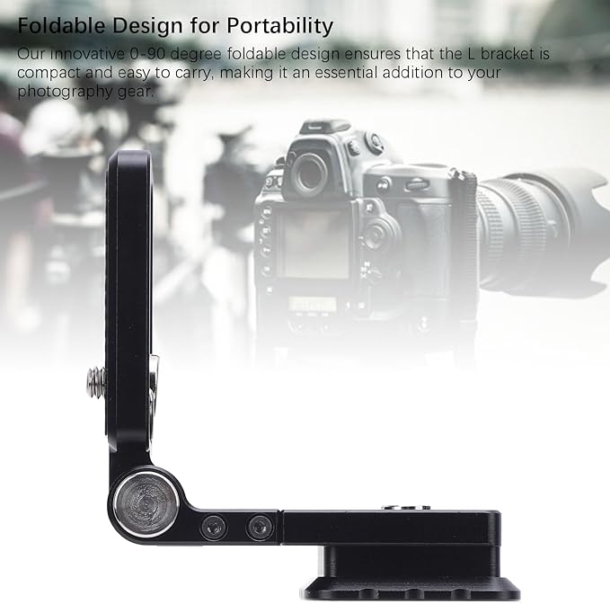 携帯性に優れた折りたたみ式デザイン: 当社の革新的な 0 ~ 90 度折りたたみ式デザインにより、L ブラケットはコンパクトで持ち運びが容易になり、写真撮影機材に欠かせない追加品になります。