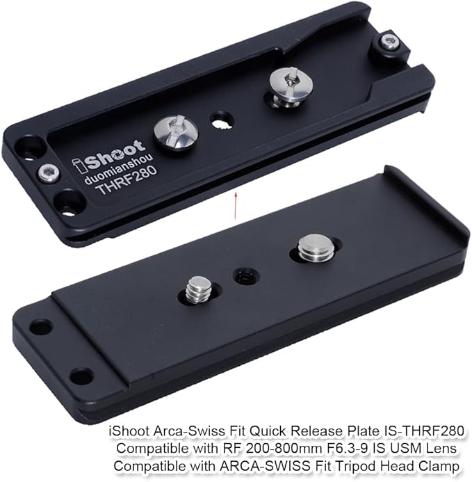 iShoot CNC メタル Arca-Swissアルカスイス フィット カメラ クイック リリース プレート, キャノン Canon RF 200-800mm F6.3-9 IS USM レンズサポート襟、レンズブラケット襟、三脚ソケット、カメラリング式三脚座、 三脚マウントリングに対応, アルカフィット三脚ヘッドクランプに使用