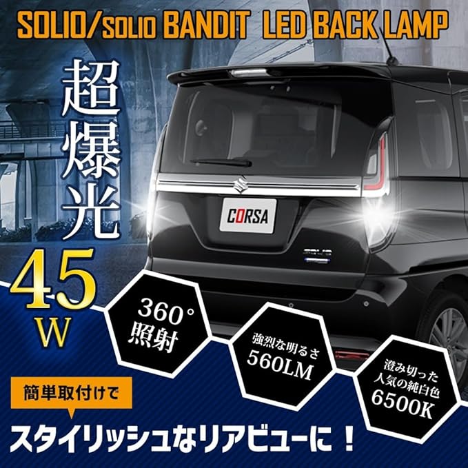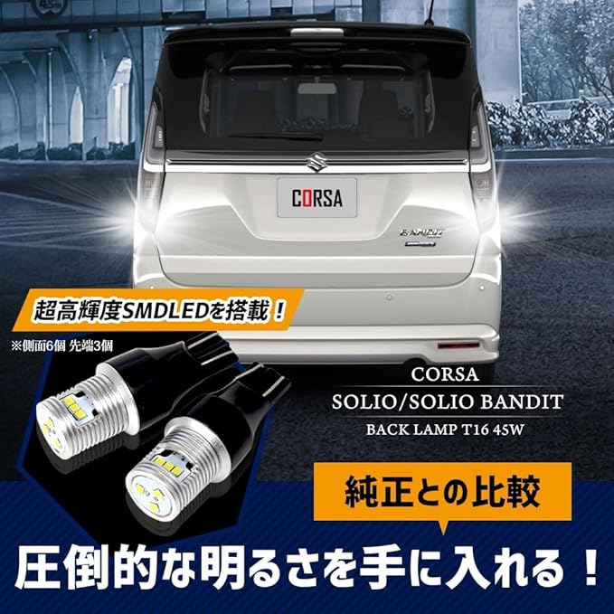CORSA ソリオ ソリオバンディット 適合 LED バックランプ T16 45W 2個1セット バックライト 無極性 6500K SOLIO BANDIT カスタム パーツ アクセサリー ドレスアップ [2] M