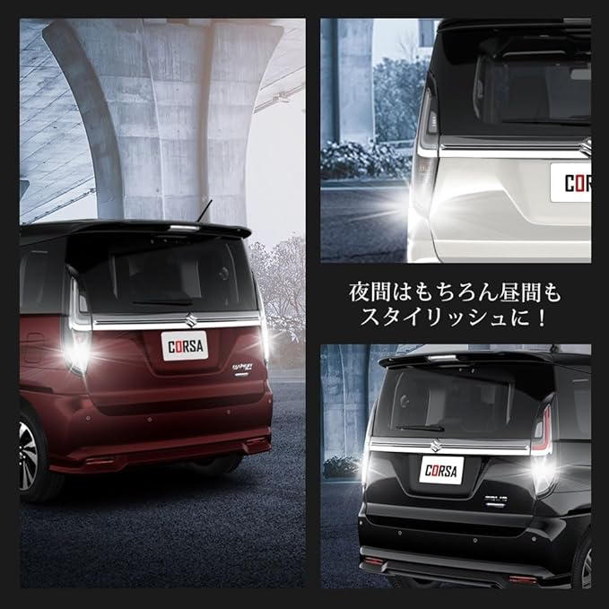 ✅ 6500K 純白ホワイトカラー:澄んだホワイト発光で視認性とスタイリッシュさを両立。夜間はもちろん、日中でもリアビューをシャープに演出します。