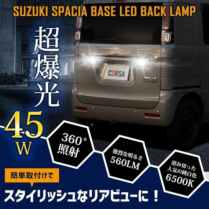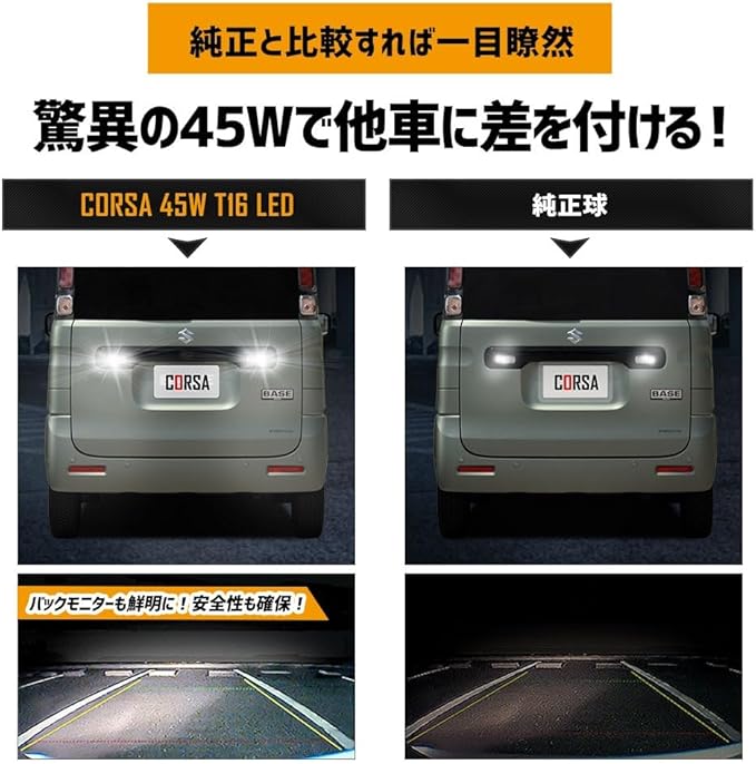 CORSA スペーシア ベース 適合 LED バックランプ T16 45W 2個1セット バックライト 無極性 6500K SPACIA BASE カスタム パーツ アクセサリー ドレスアップ [2] M