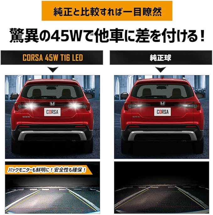 CORSA WR-V 適合 LED バックランプ T16 45W 2個1セット バックライト 無極性 6500K WRV カスタム パーツ アクセサリー ドレスアップ [2] M