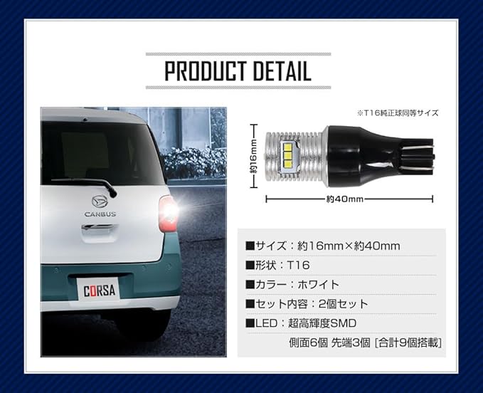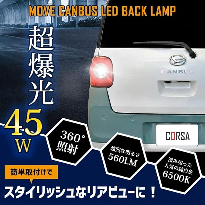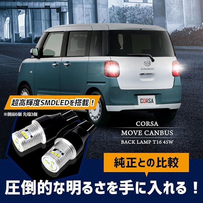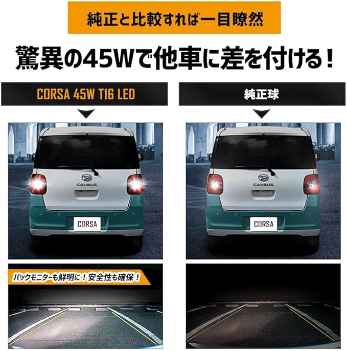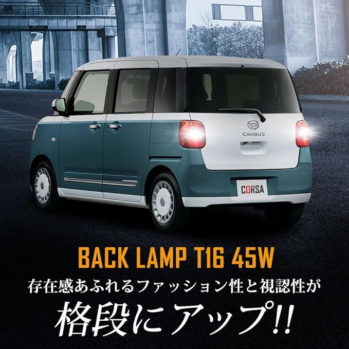 CORSA ムーヴ キャンバス 適合 LED バックランプ T16 45W 2個1セット バックライト 無極性 6500K ムーブ MOVE CANBUS カスタム パーツ アクセサリー ドレスアップ [2] M