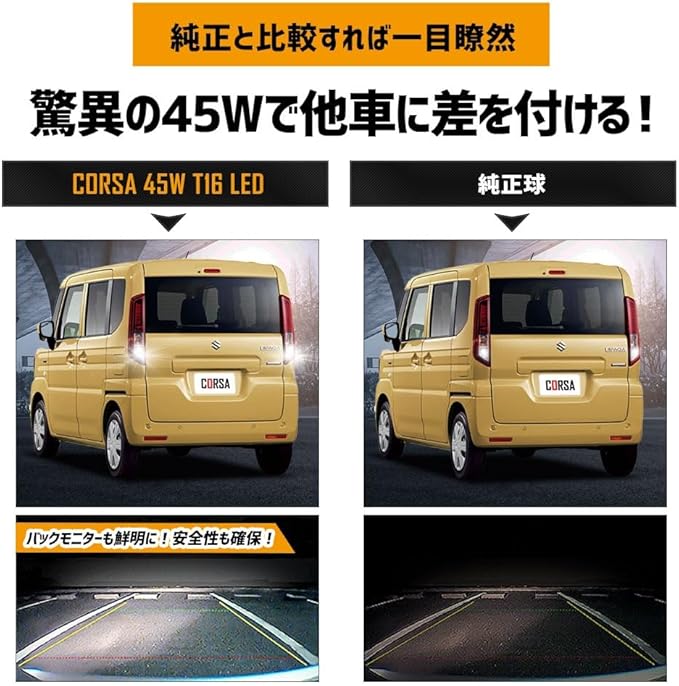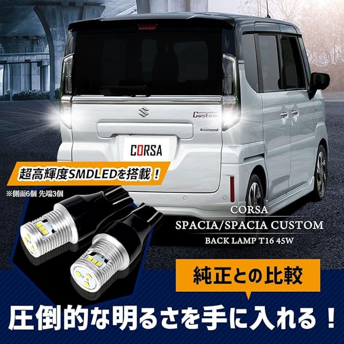 CORSA スペーシア スペーシアカスタム 適合 LED バックランプ T16 45W 2個1セット バックライト 無極性 6500K SPACIA CUSTOM カスタム パーツ アクセサリー ドレスアップ [2] M