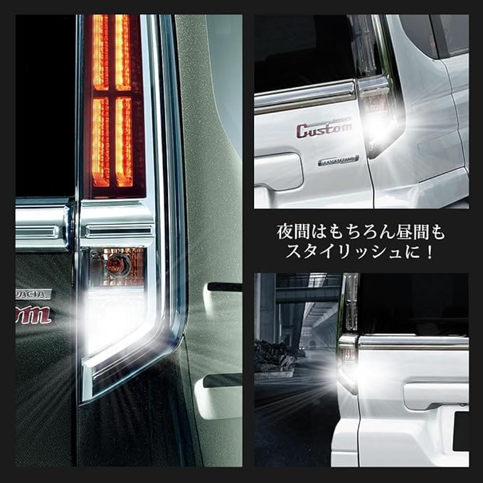 ✅ 6500K 純白ホワイトカラー:澄んだホワイト発光で視認性とスタイリッシュさを両立。夜間はもちろん、日中でもリアビューをシャープに演出します。