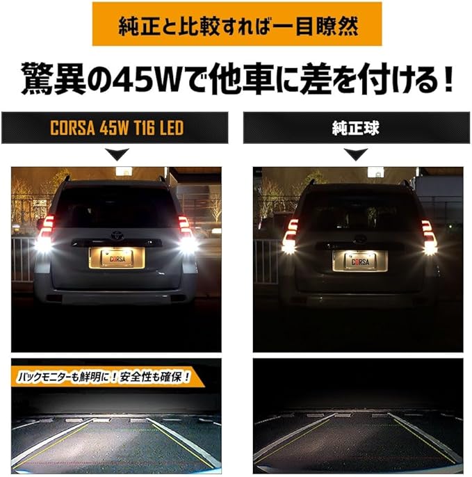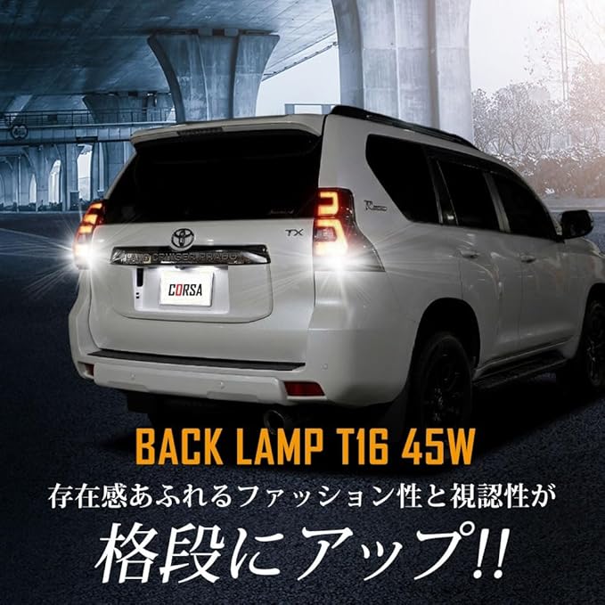 CORSA ランドクルーザー プラド 150系 適合 LED バックランプ T16 45W 2個1セット バックライト 無極性 6500K 150 LAND CRUISER PRADO TRJ GRJ GDJ カスタム パーツ アクセサリー ドレスアップ [2] M