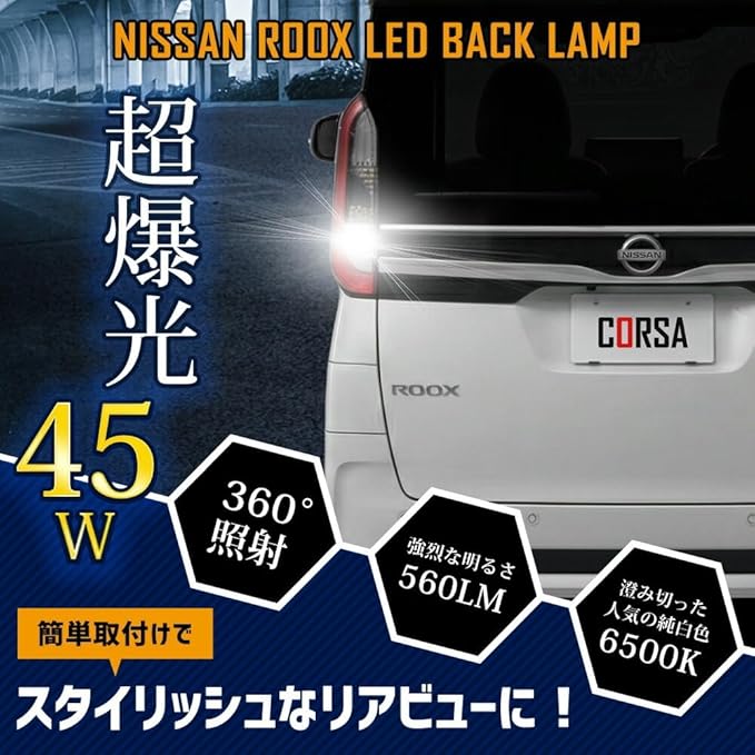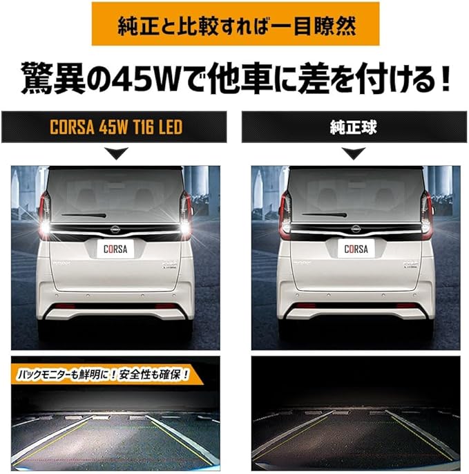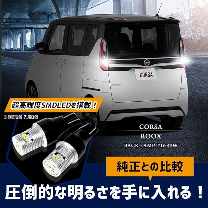 CORSA ルークス マイナーチェンジ後 適合 LED バックランプ T16 45W 2個1セット バックライト 無極性 6500K ROOX カスタム パーツ アクセサリー ドレスアップ [2] M