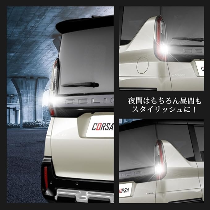 ✅ 6500K 純白ホワイトカラー:澄んだホワイト発光で視認性とスタイリッシュさを両立。夜間はもちろん、日中でもリアビューをシャープに演出します。