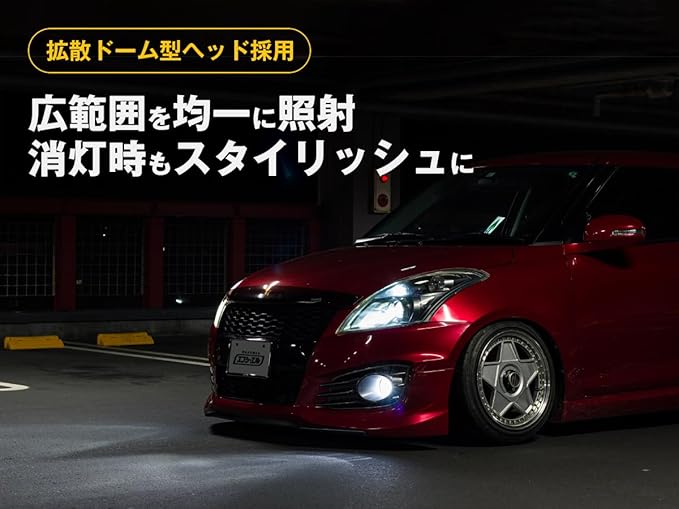 【360度照射と美しいステルス性】 高性能な拡散ドーム型ヘッドを搭載し、LED特有の直線的な光を全方向へ均一に拡散させます。リフレクター内をムラなく効率的に照らすため、視認性が大幅に向上。さらに、消灯時にLEDチップが目立たないステルス設計を採用したことで、クリアレンズ内でもバルブが浮き上がることなく、スマートで洗練された外観を維持します。点灯時の鮮やかな輝きと、消灯時の美しさを両立させたこだわりのプロダクトです。