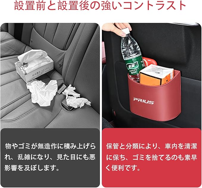 プリウス 専用 車用ゴミ箱 倒れない 車内 収納ボックス ドリンクホルダー 傘ホルダー 小物入れツーリング スポーツ 内装パーツ 専用ロゴ カーアクセサリー おしゃれ 便利グッズ 小型 運転席/助手席用 カー用品 多機能収納ボック 1個(レッド, プリウス Prius)